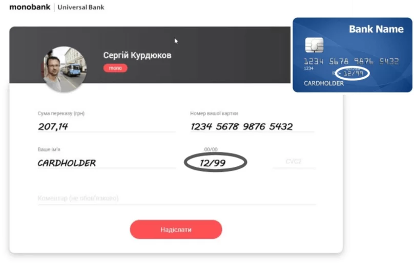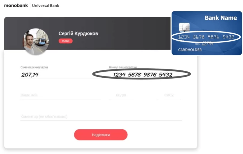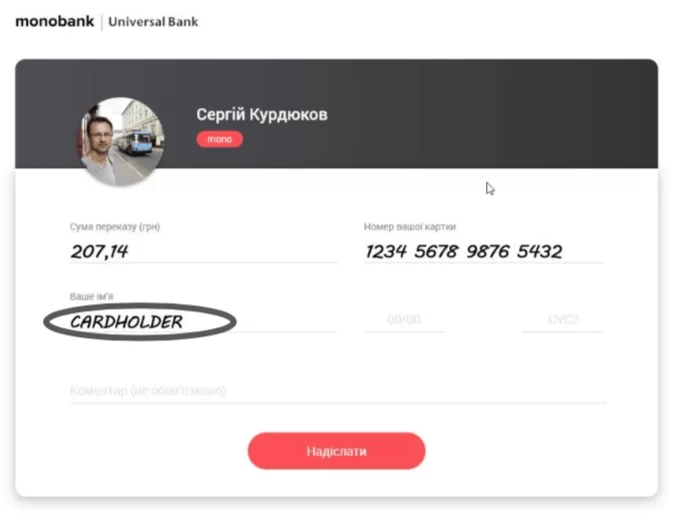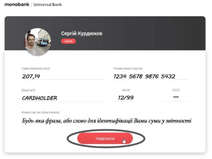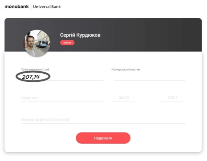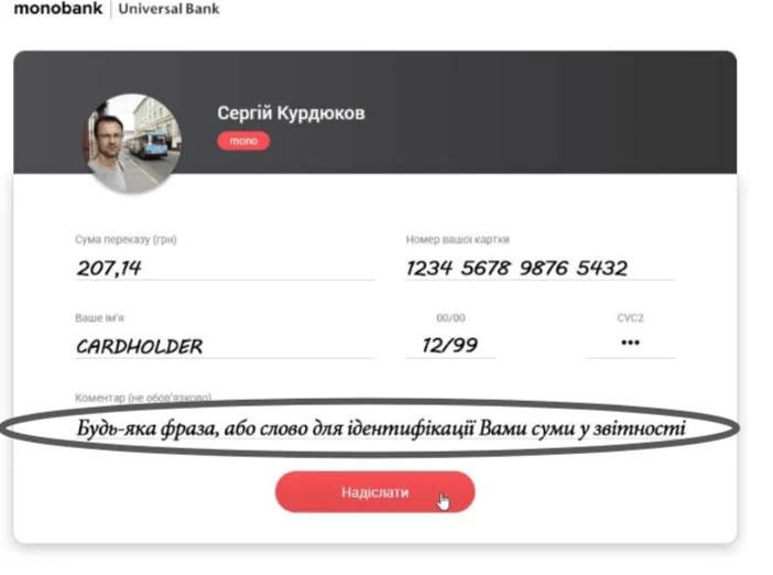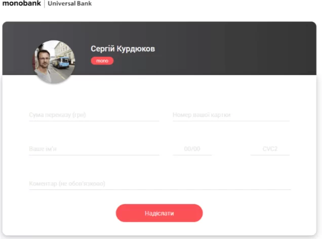 Коли натиснете на кнопку перейти до оплати карткою, опинитесь на сайті сервісу переказу грошей monobank від Universal Bank