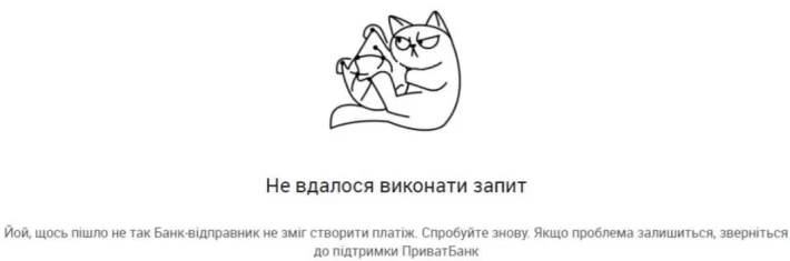 Якщо платіж не виконано, сума з Вашої картки не спишеться. Ви отримаєте таке повідомлення з посиланням на Ваш банк